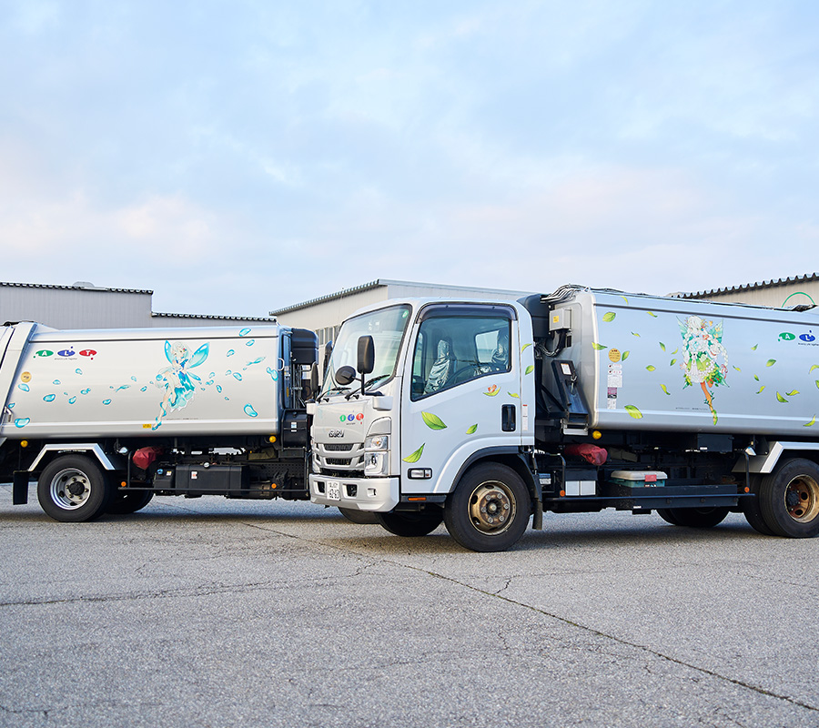 富山市、舟橋村からの委託により、ごみステーションから、「燃やせるごみ」「燃やせないごみ」などの家庭ごみを収集しています。