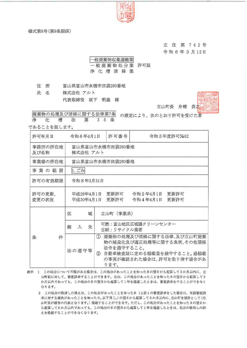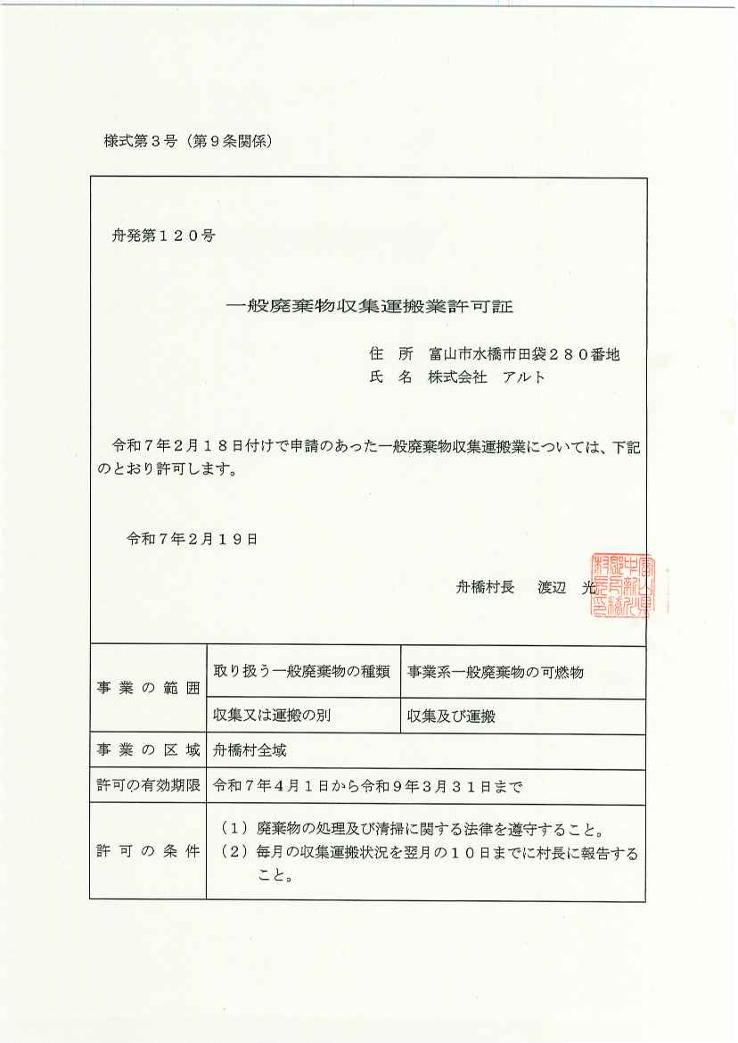 令和9年12月25日産業廃棄物処分業