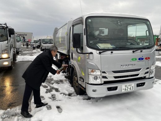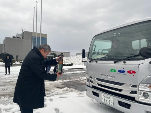本年の仕事始めにあたり、2026年1月5日に1年間の安全を祈念して弊社伝統行事「運搬車両の出発式」を行いました。