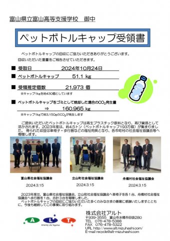 また、見学に際して51.1kg(推定21,973個分)のペットボトルキャップを提供していただきました。