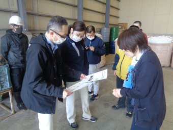 持参いただいたペットボトルキャップを粉砕し、プラスチック資源に加工する工程を見学していただきました。